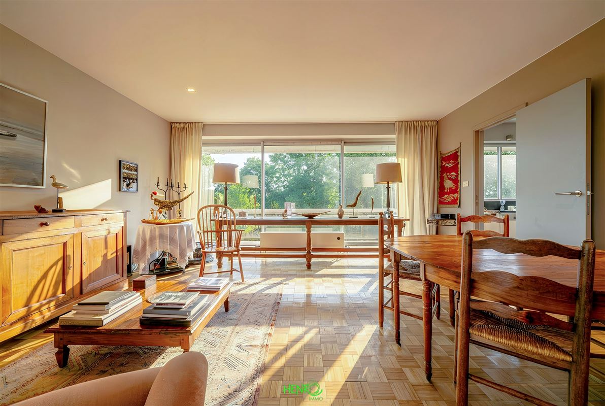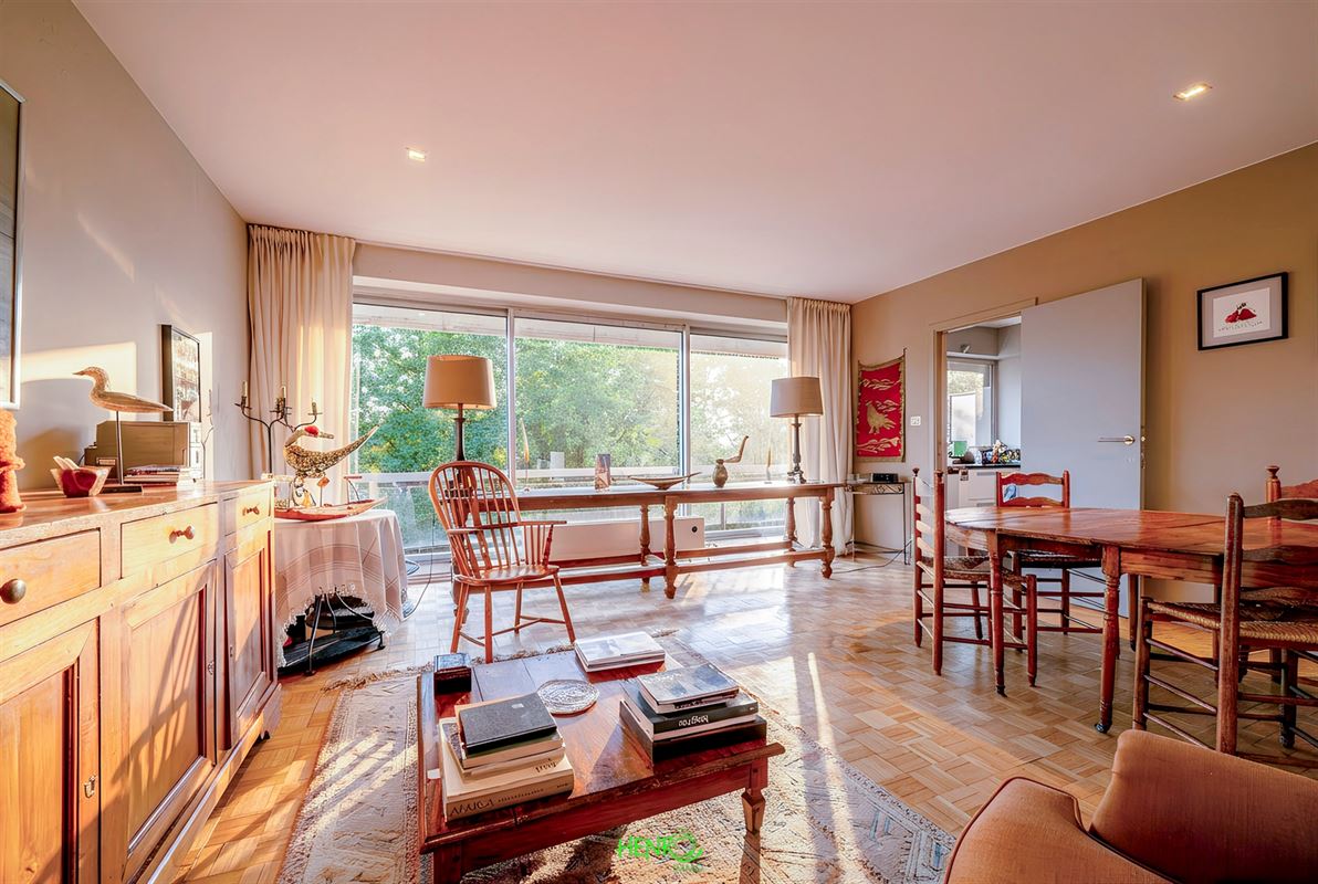 Le logement propose trois chambres et deux pièces d'eau, dont une chambre bénéficiant d'une terrasse privative. Caractéristiques : excellent PEB, châssis double vitrage en aluminium, nombreux placards intégrés, vidéophone, cave privative au sous-sol.