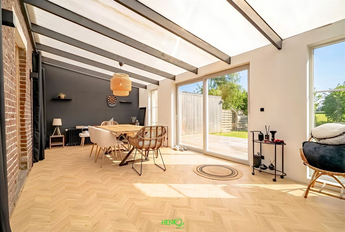 Jolie maison située à l'entrée du village de Celles, dans un environnement verdoyant et particulièrement calme. Elle offre d'agréables pièces de vie lumineuses et traversantes (salon, salle à manger, véranda).