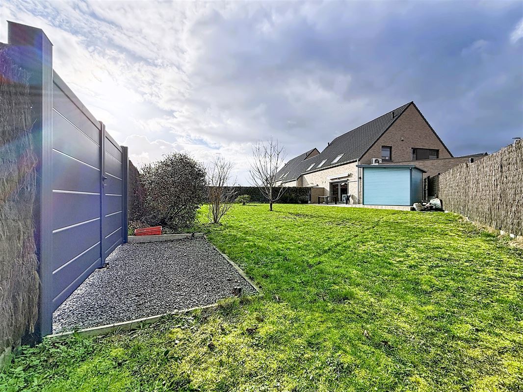 Habitation 3 façades de 2015 située à Dottignies, bénéficiant d’un accès arrière en fond de jardin.