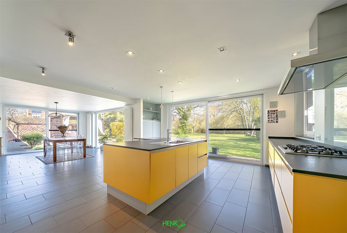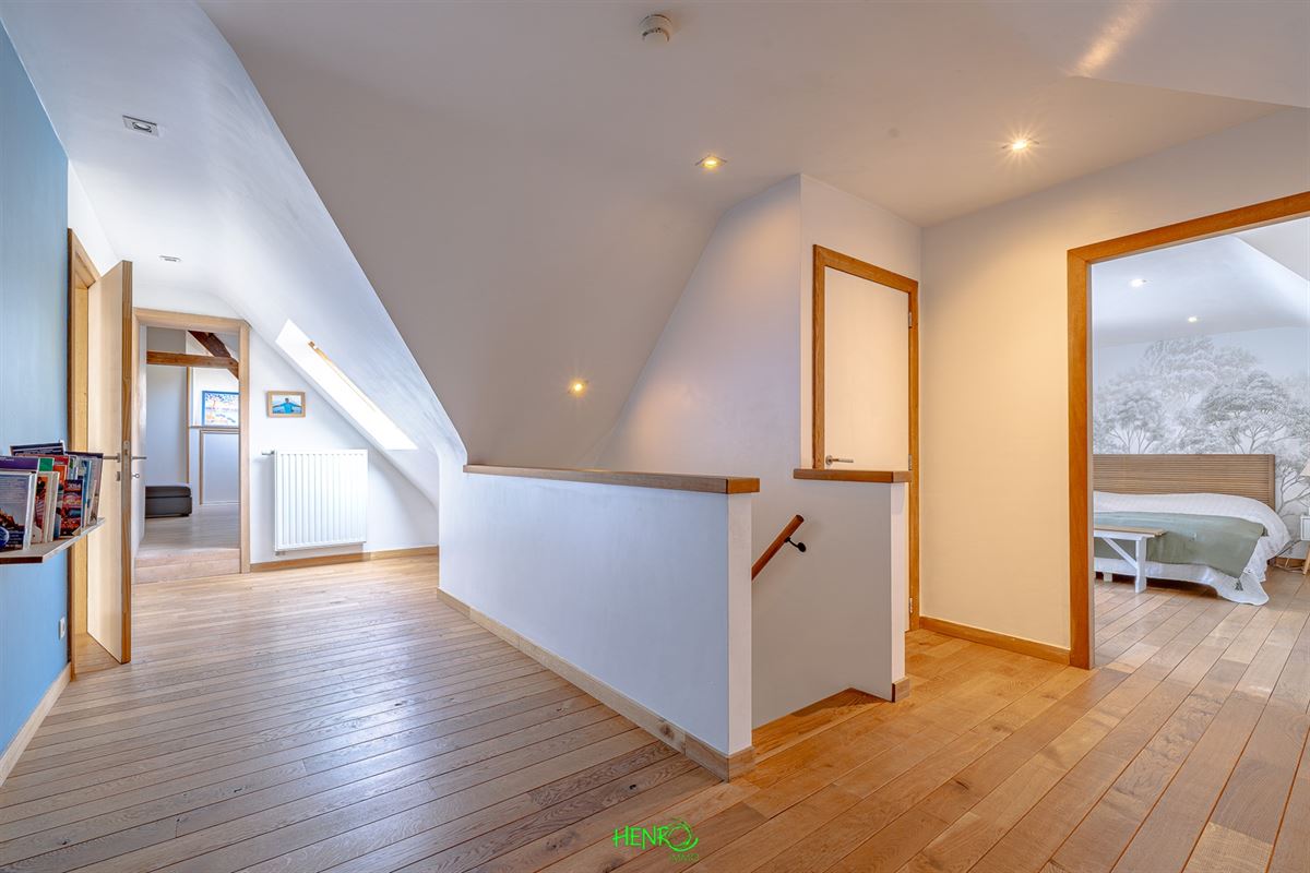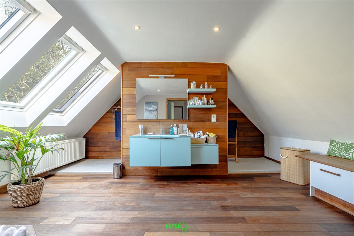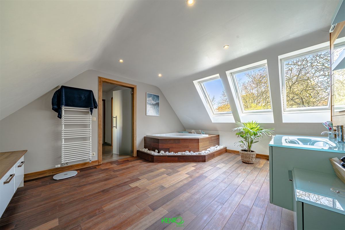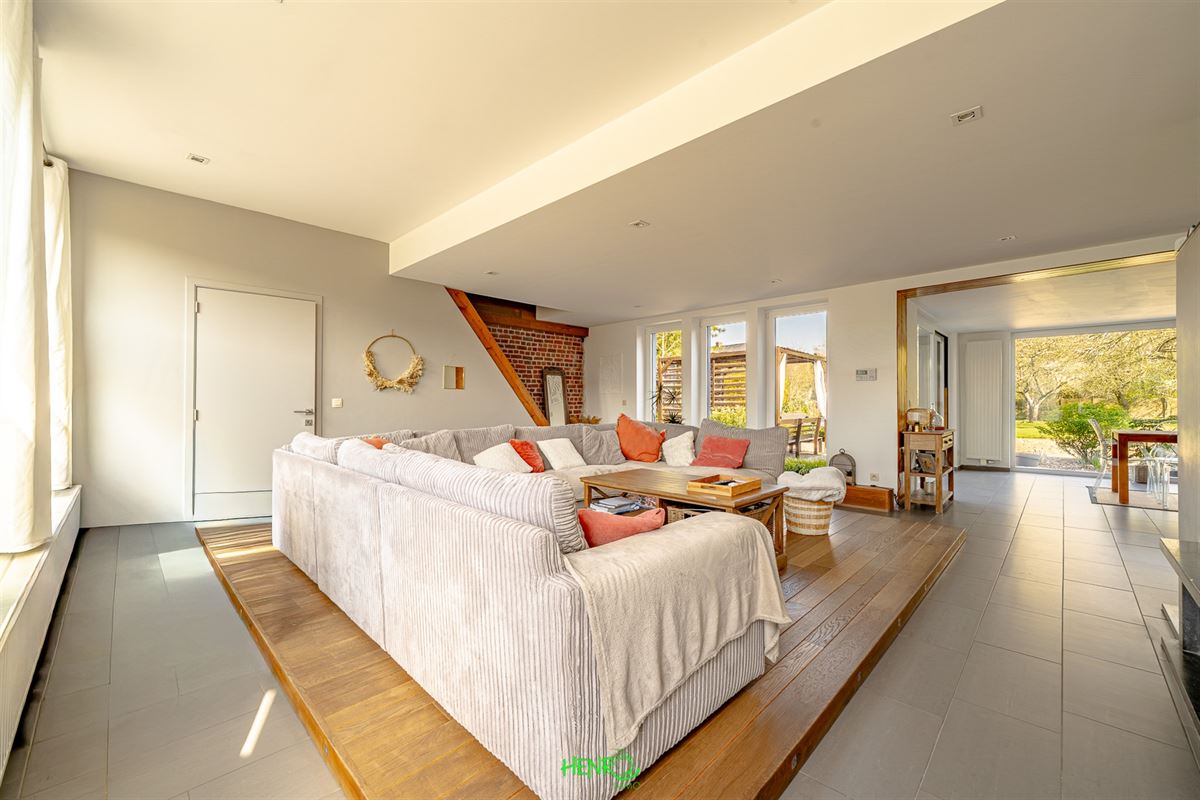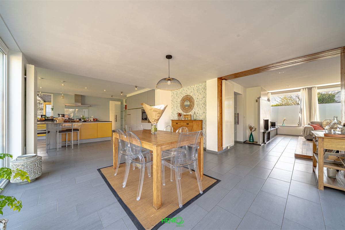 Implantée sur un terrain verdoyant de 2070 m², cette habitation développe ± 422 m² habitables répartis sur deux niveaux et profite dune extension réalisée en 2009. Conçue avec des matériaux durables, elle se distingue par une présentation soignée et actuelle, ne nécessitant aucun rafraîchissement. Son jardin paysagé, richement planté, offre un cadre extérieur particulièrement agréable. Le bien propose de nombreux avantages : très bonne performance énergétique (excellent PEB), système de ventilation (VMC), citerne d'eau de pluie d'environ 6500 L, deux garages ainsi que plusieurs emplacements de stationnement (5 à 6 véhicules), et une organisation idéale pour l'exercice dune activité indépendante.