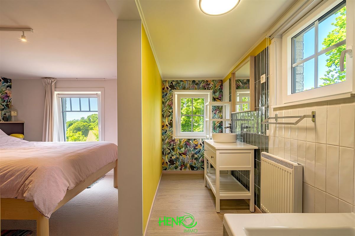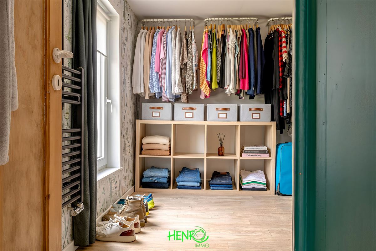 À l'étage : une chambre avec salle de bain, deux chambres (8 et 10 m²) et un grand dressing de 15 m² pouvant devenir une 4e chambre.