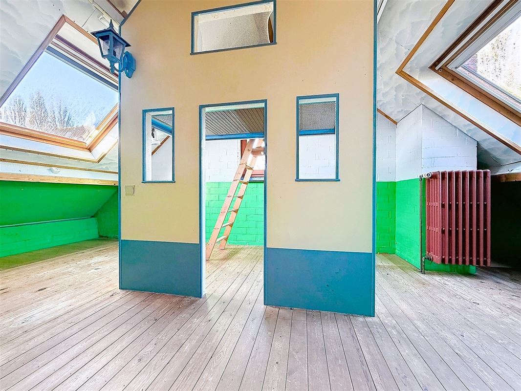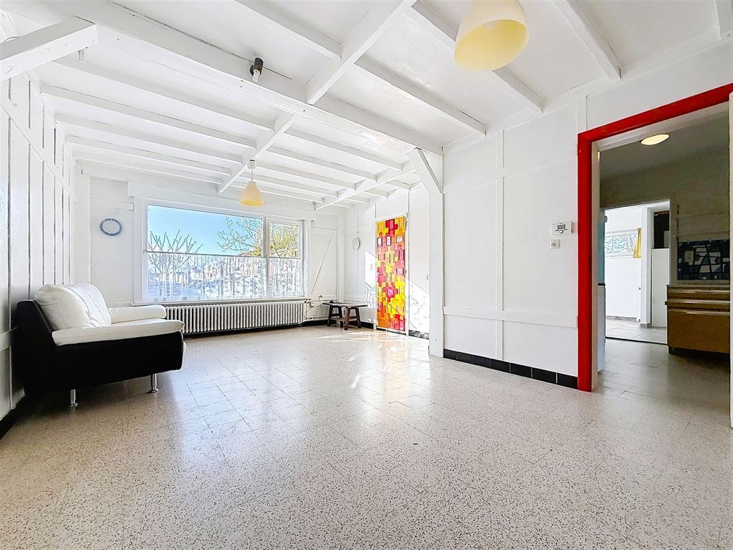 Elle se compose, au rez-de-chaussée, d’un hall d’entrée avec WC séparé, d’un living, d’une cuisine semi-équipée ouverte sur une véranda lumineuse, ainsi que d’une chambre avec salle de douche et un second WC.Au premier étage, vous trouverez trois chambres, un espace bureau ou dressing, ainsi qu’une seconde salle de bains. Le deuxième étage propose une chambre supplémentaire et un espace de rangement, accessibles via un escalier de type échelle.À l’extérieur, le bien bénéficie d’un très grand jardin offrant de nombreuses possibilités d’aménagement. La maison dispose également d’un passage latéral, d’un accès arrière, de deux garages ainsi que de places de parking.Il s’agit d’une construction robuste, à rafraîchir et à rénover sur certains postes, idéale pour un projet familial ou un investissement.