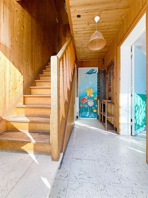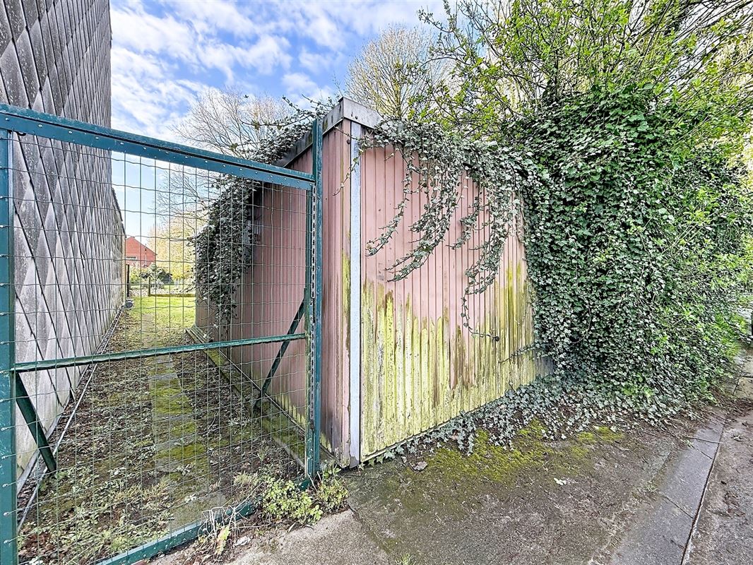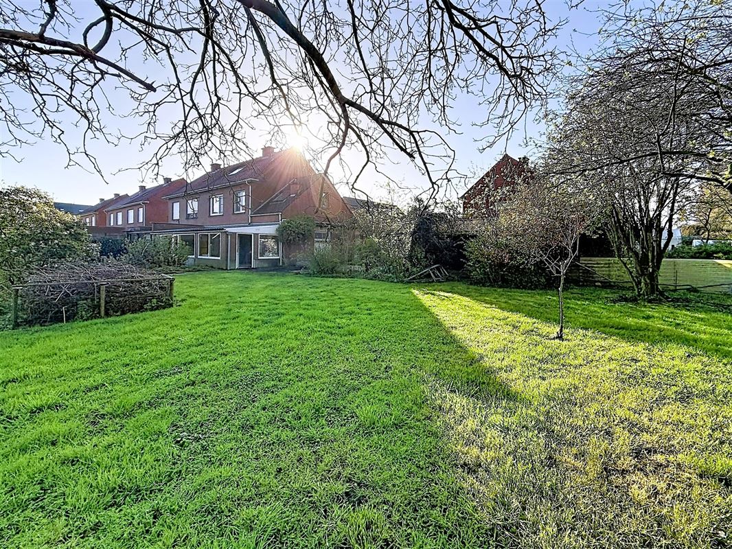 Située dans un clos calme à Mouscron (Clos de la Bleuse Tartine 57). Cette maison trois façades, érigée sur une parcelle de 1 308 m², se distingue d’emblée par la présence d’un terrain à bâtir à l’arrière, avec accès par la rue du Labyrinthe, où se situe également l’un des deux garages.