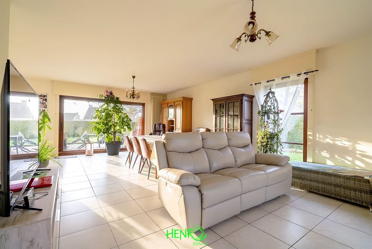 Le rez-de-chaussée s'ouvre sur un vaste hall d'entrée avec WC et espace vestiaire, menant vers un séjour spacieux et traversant baigné de lumière. La cuisine équipée avec coin repas constitue un véritable lieu de vie. Une buanderie fonctionnelle, en liaison directe avec le garage, complète le rez-de-chaussée.