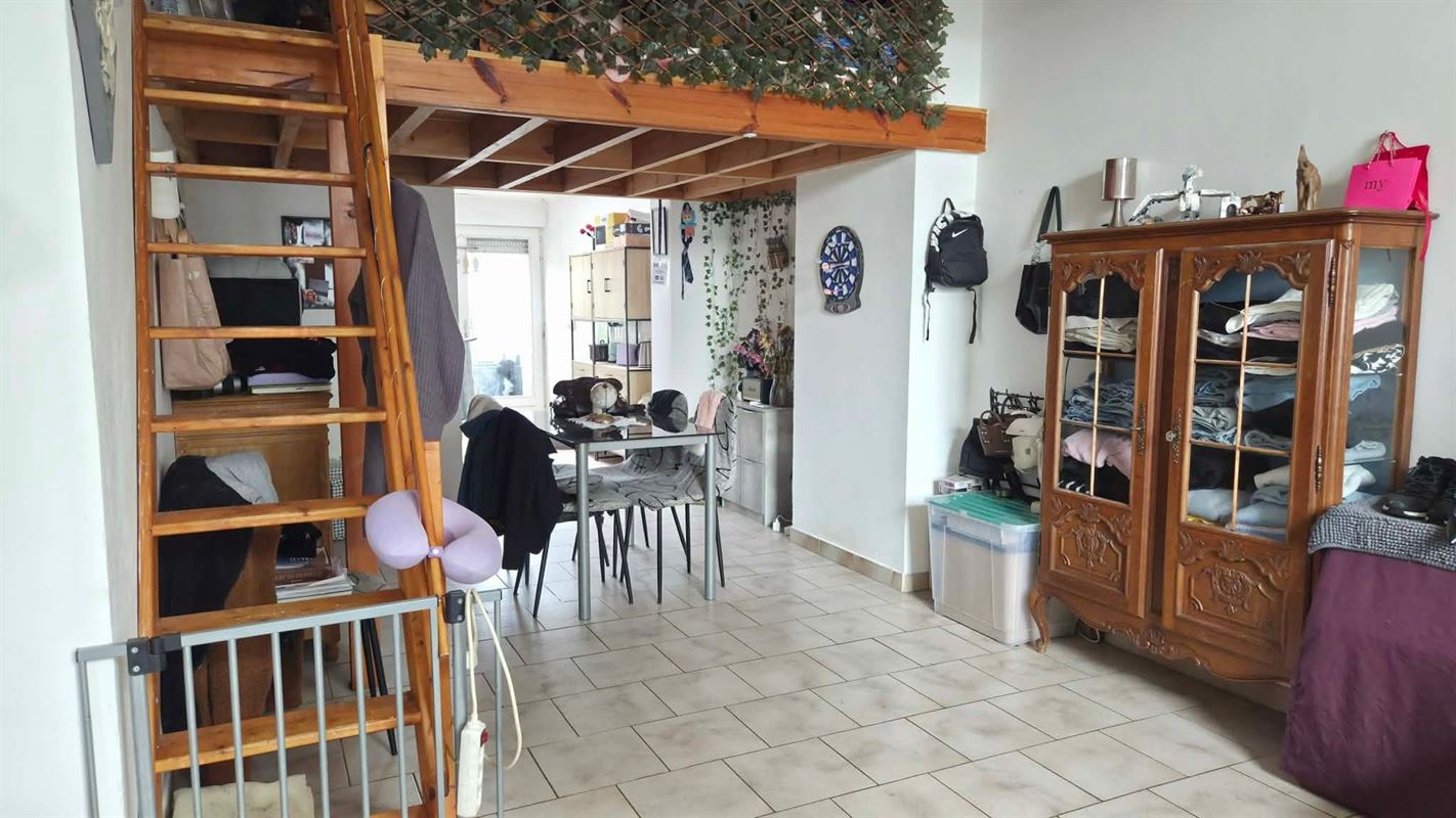 Au rez-de-chaussée, vous trouverez un appartement de ±66 m² comprenant un séjour avec salon/salle à manger, un coin mezzanine, une cuisine équipée et une salle d'eau, ainsi qu'une agréable terrasse et un jardin privatif, actuellement loué 540 /mois.