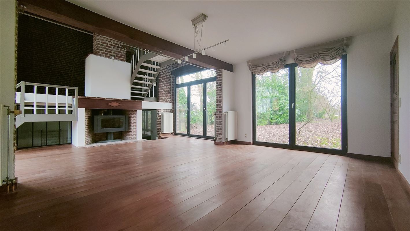 Le rez-de-chaussée se compose d’un spacieux living chaleureux avec feu ouvert et une mezzanine généreuse pouvant accueillir un bureau ou un espace de vie selon vos besoins.