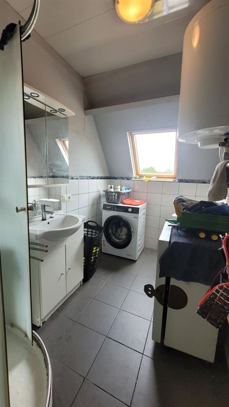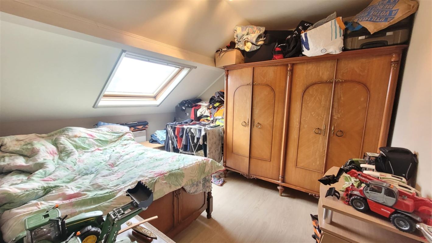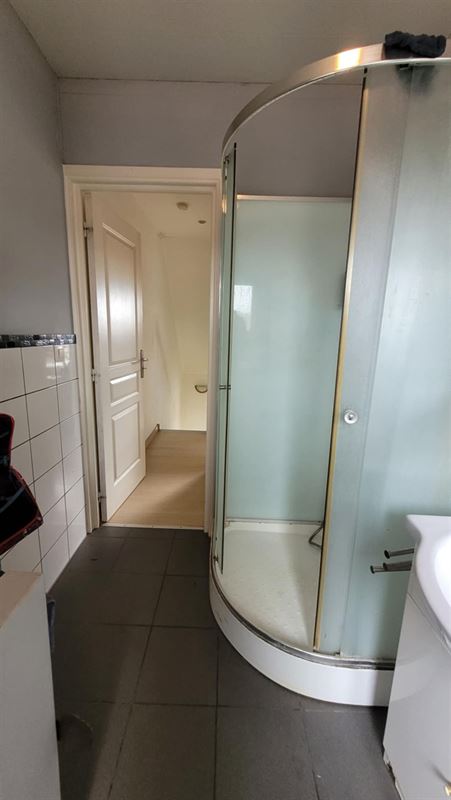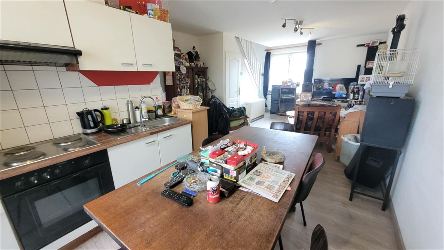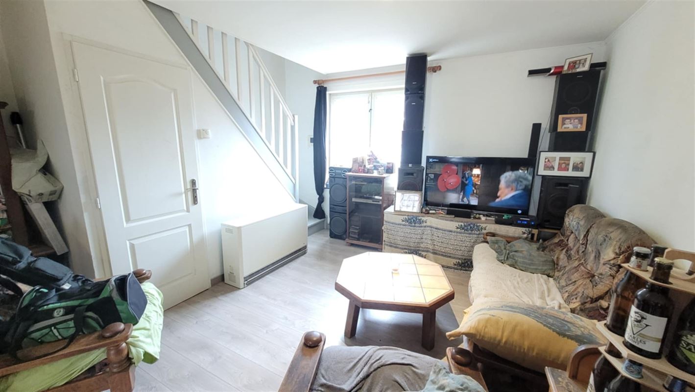 On retrouve : un hall d'entrée, un wc, dans le prolongement : un séjour ouvert et traversant sur une cuisine semi-équipée. L'étage propose un couloir desservant deux chambres et la salle de douche. Petit grenier présent au second niveau. Compteurs séparés, électricité conforme, peb en D, toiture neuve.