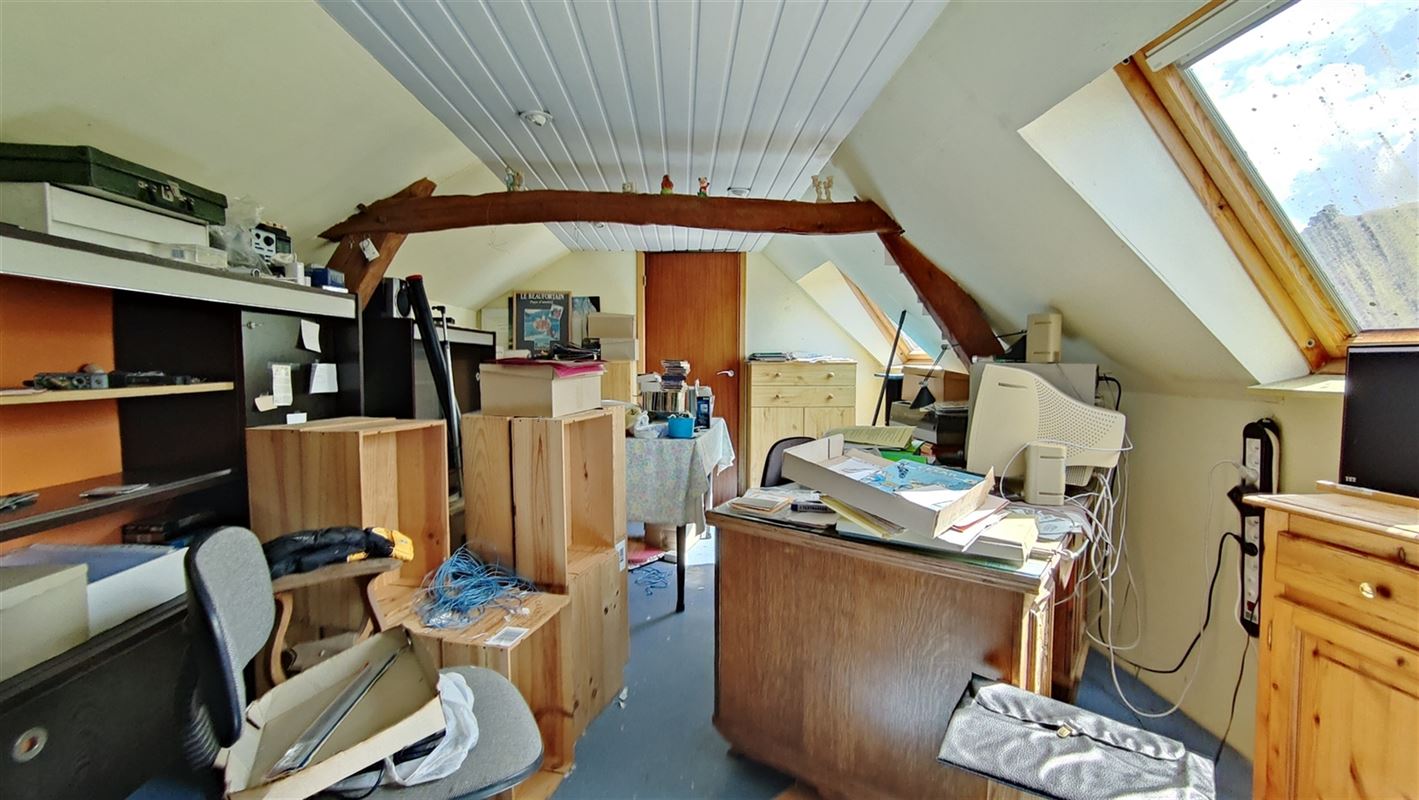 Très lumineux, le premier corps de logis comprend au rez-de-chaussée un vaste séjour/salle à manger, un espace cuisine, trois chambres, ainsi qu'une buanderie. À l'étage, un vaste grenier partiellement aménagé se prête à toutes sortes de projets familiaux grâce aux deux chambres déjà aménagées.