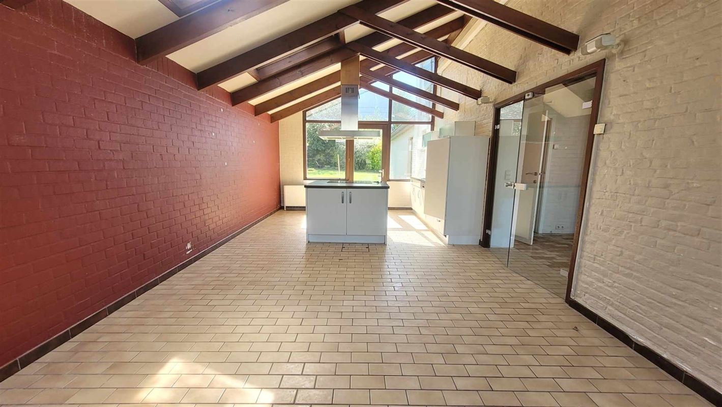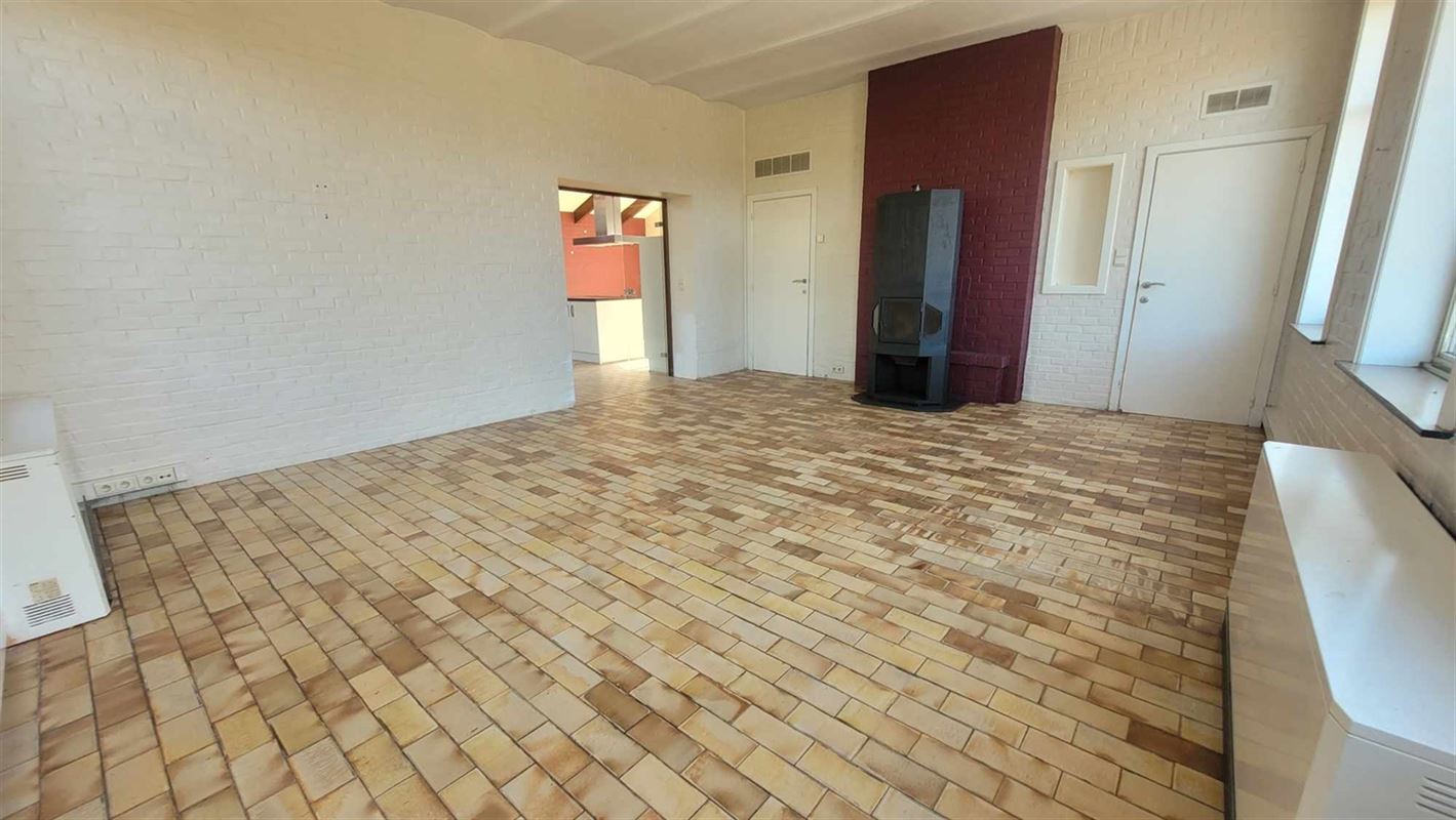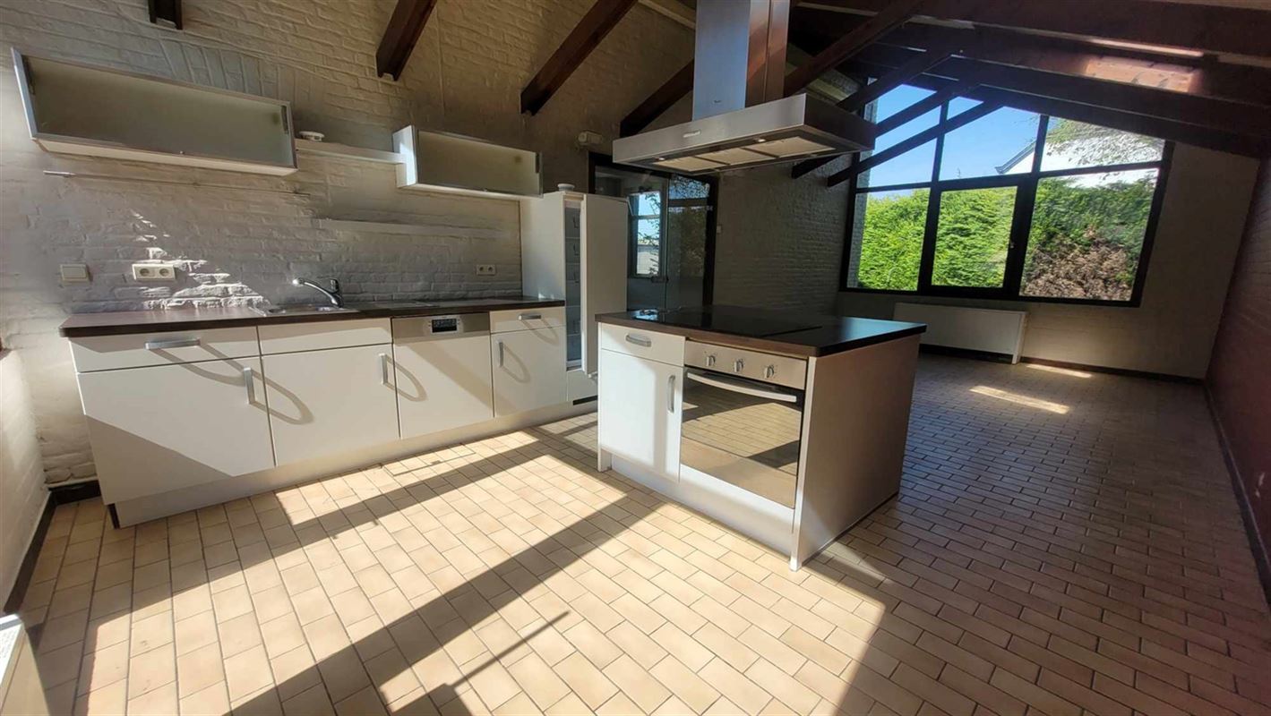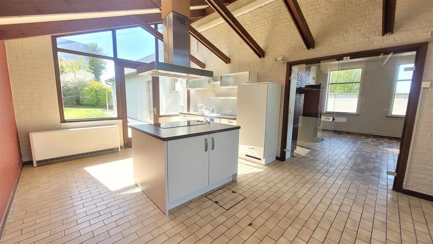 Vous y trouverez : un hall d'entrée, une buanderie, un wc, un grand salon/sàm lumineux (avec un feu au bois) ouvert sur la grande cuisine équipée avec ilot central et son coin à manger.