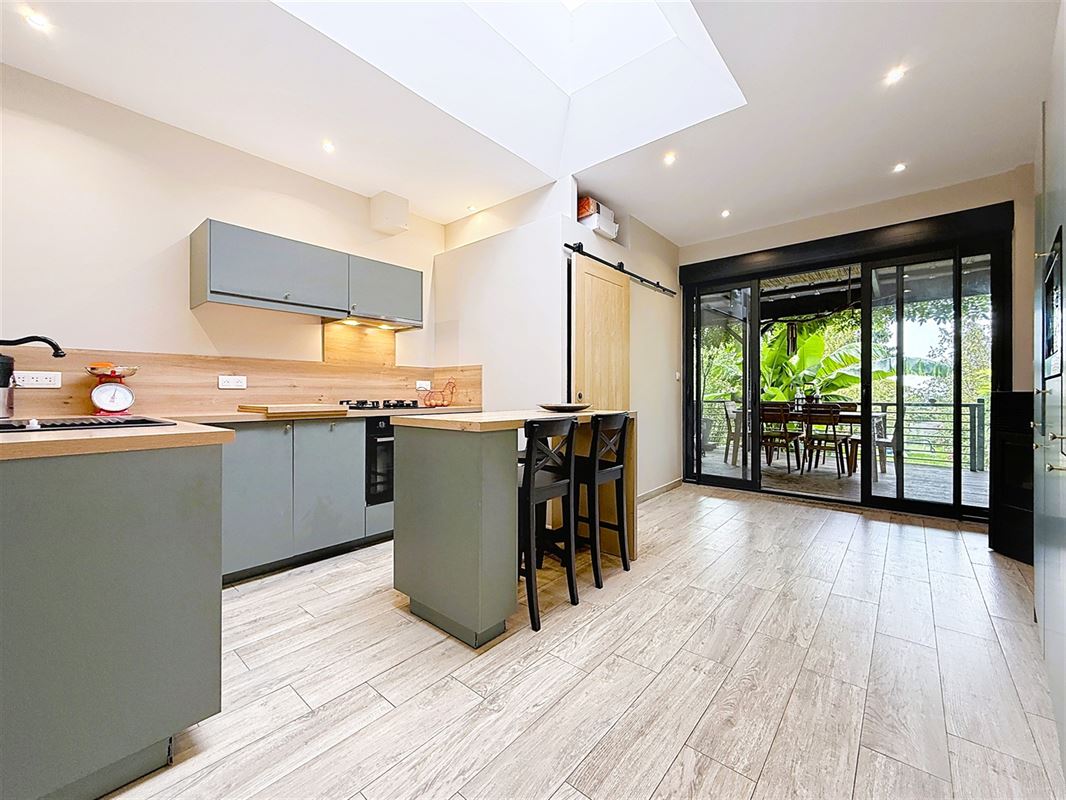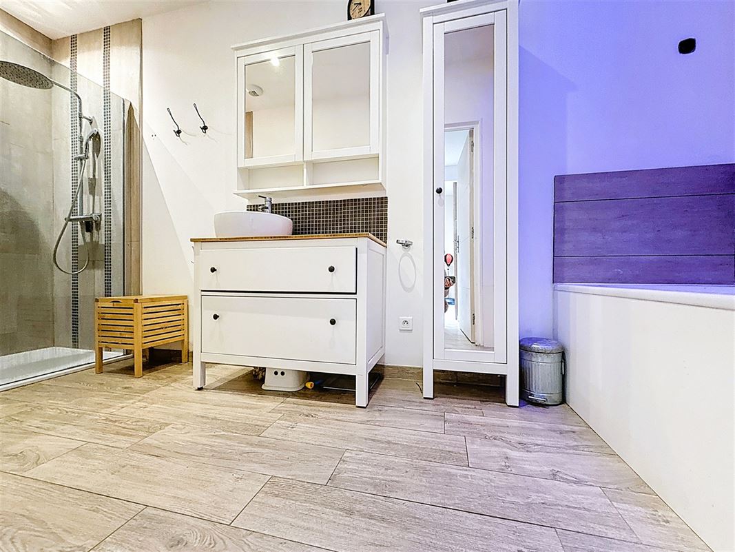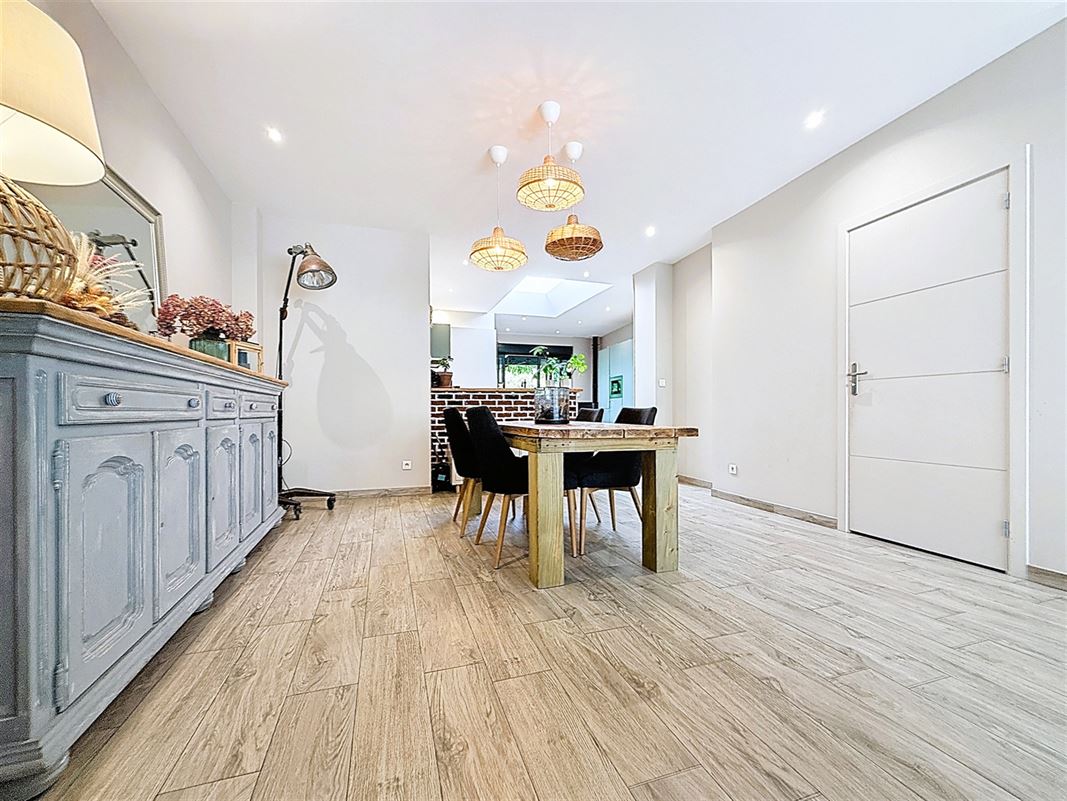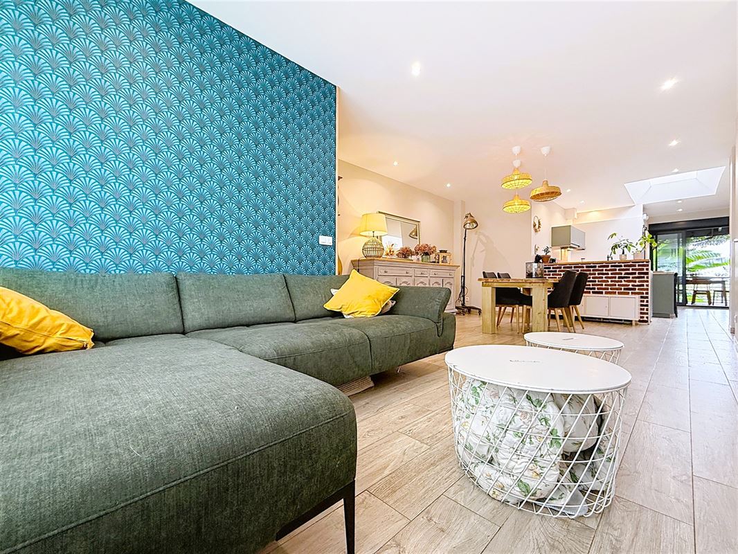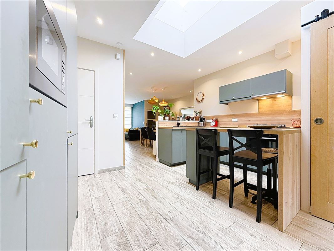 Habitation rénovée située à Rekkem, dans une rue partagée avec Mouscron.Dès l'entrée, un hall avec vestiaire mène à une pièce de vie lumineuse composée d'un salon et dune salle à manger. L'extension accueille une cuisine ouverte entièrement équipée (plaque, hotte, four, évier, micro-ondes), avec îlot central, coin repas et nombreux rangements.Un couloir dessert une salle de bains complète (baignoire, douche à l'italienne, meuble lavabo, sèche-serviette) et un WC suspendu séparé.À l'étage, le hall de nuit distribue deux chambres.