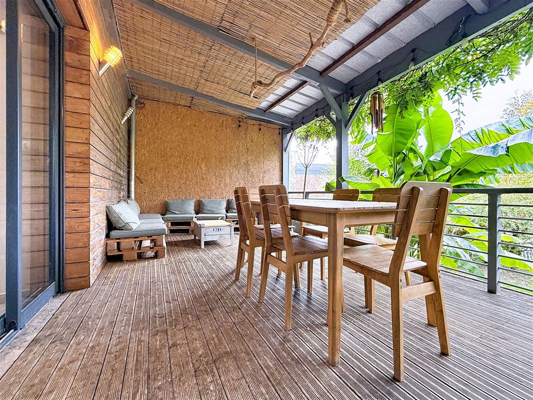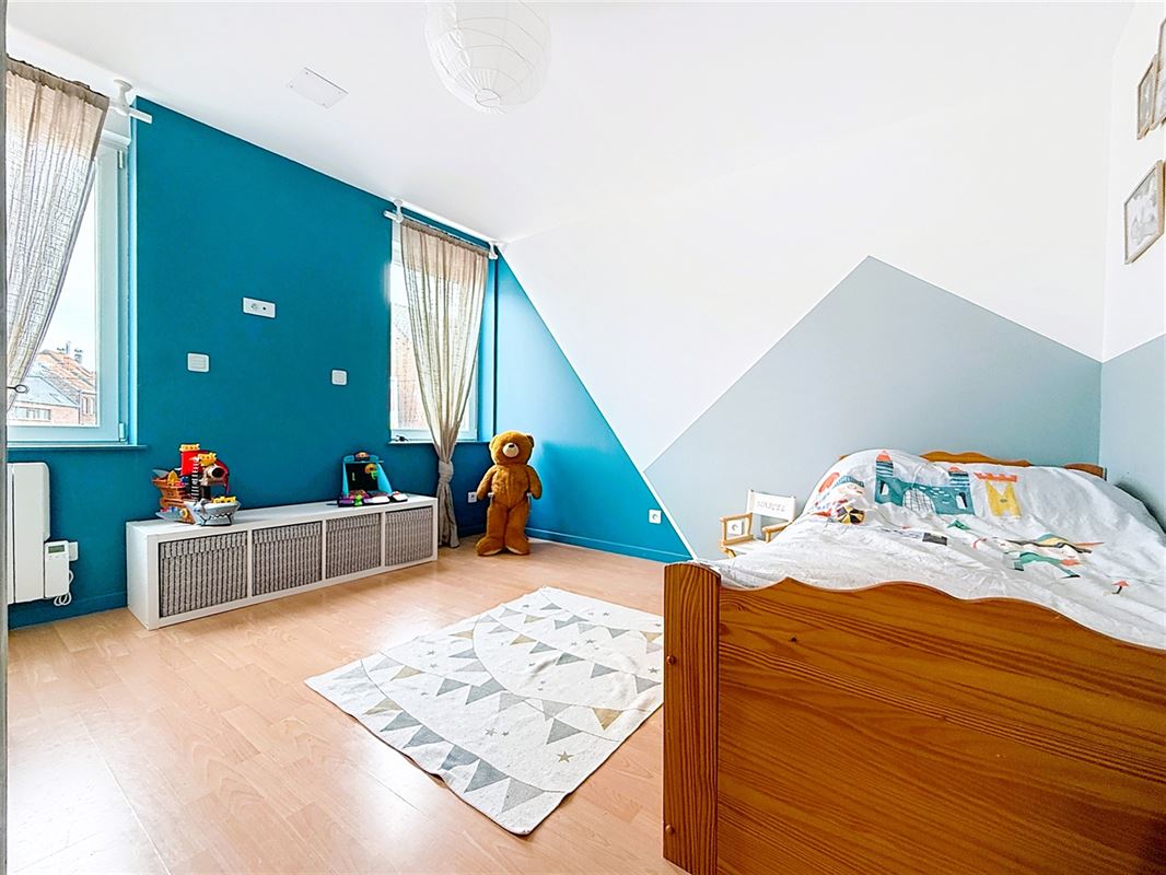 Le second étage propose une troisième chambre aménagée dans le grenier, accessible via un escalier fixe.Le sous-sol complet comprend plusieurs caves, dont une buanderie/chaufferie avec accès direct vers l'extérieur. Une des caves est aménagée et idéale pour la musique, le bricolage, les jeux ou un atelier créatif.À l'arrière, vous profitez dune terrasse en bois couverte, en hauteur, et d'un jardin clôturé.Maison rénovée à la frontière flamande, proche des écoles, commerces, transports et grands axes. Poêle à pellets, châssis double vitrage PVC/bois avec volets motorisés, carrelage effet parquet, parquet dans les chambres, spots intégrés et boiler pour l'eau chaude.