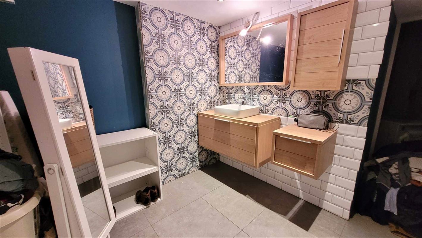 Au rez-de-chaussée, vous découvrirez un salon, une salle à manger accueillante, un WC, une salle de bain, ainsi qu'une grande cuisine entièrement équipée avec un coin buanderie.