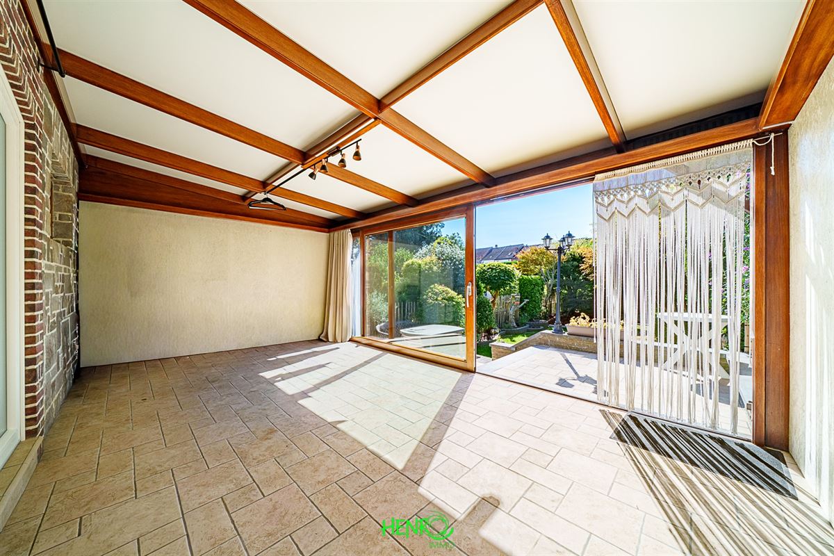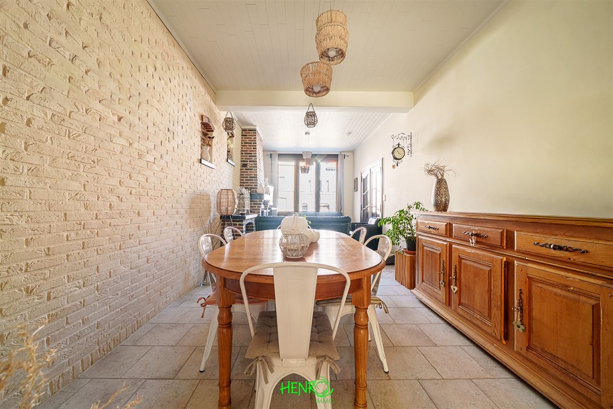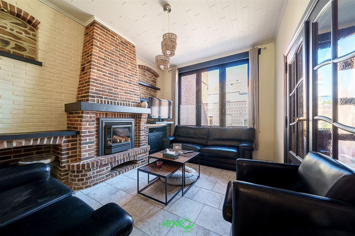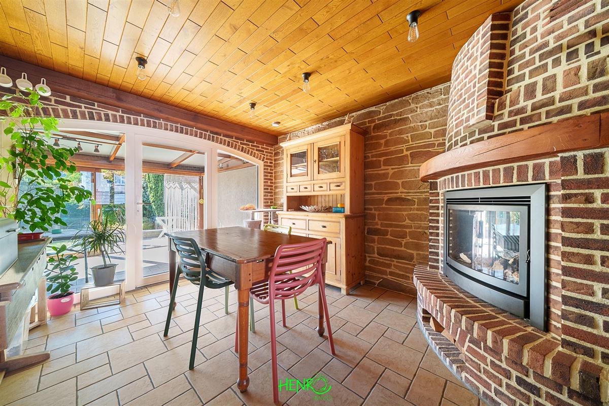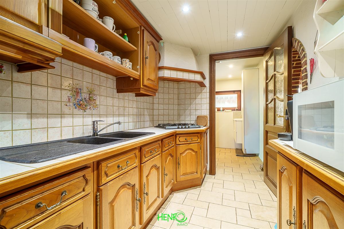RDC : grand couloir desservant la cuisine qui est équipée, le salon et la salle à manger qui sont traversants. Vous y trouverez également une nouvelle salle de bains, un coin buanderie et une véranda avec une nouvelle toiture.