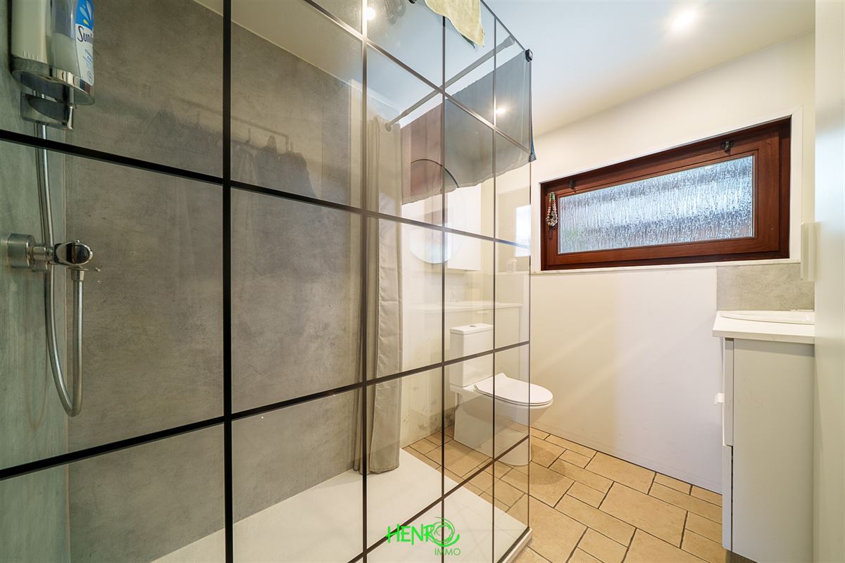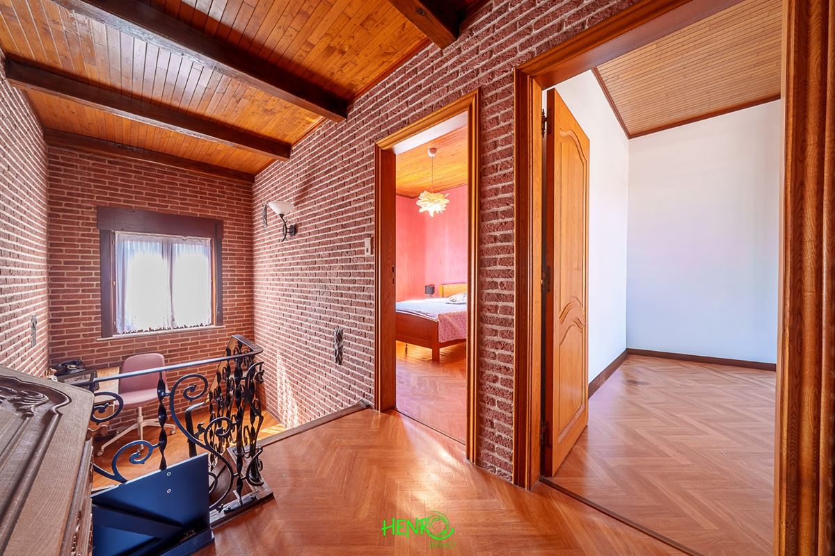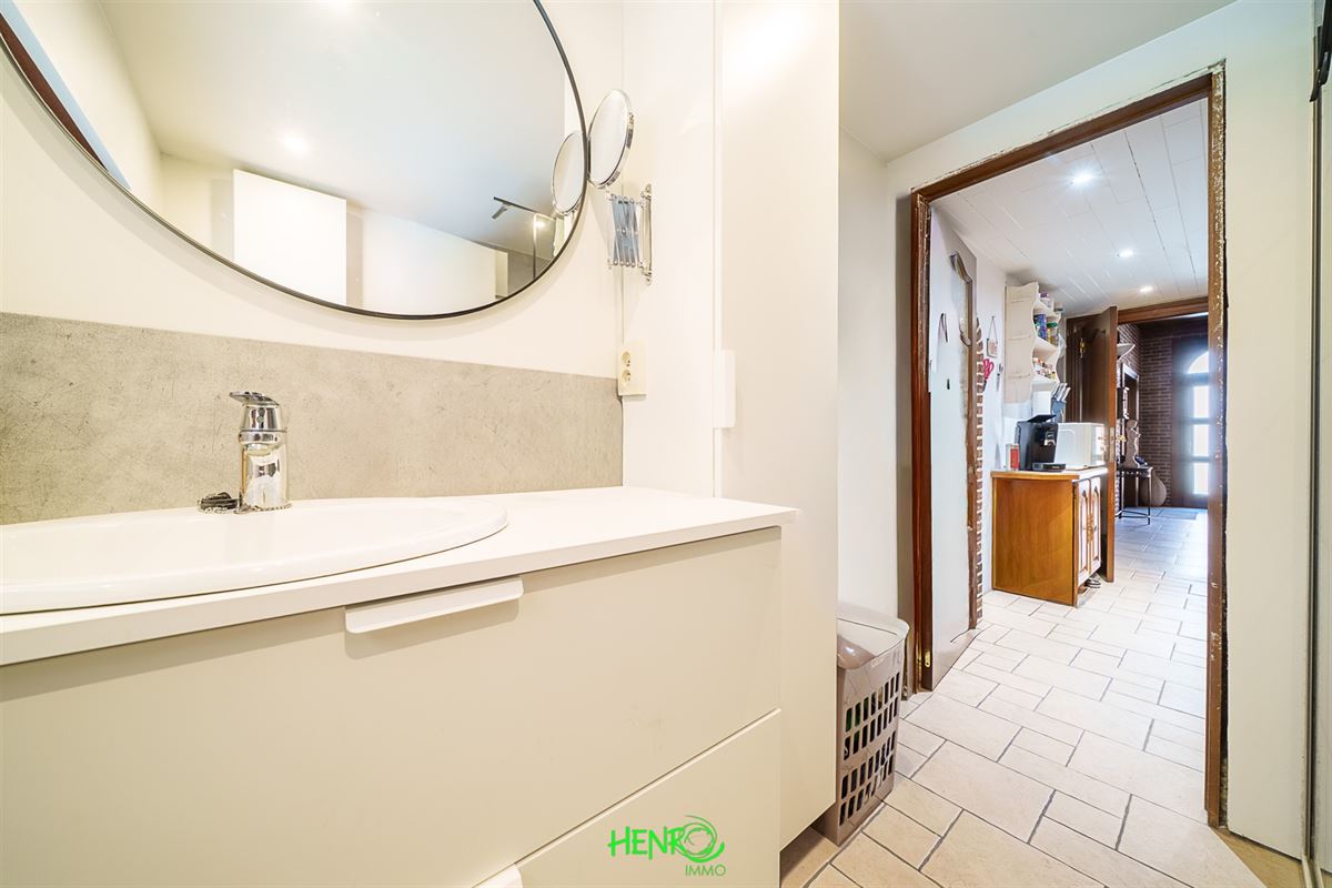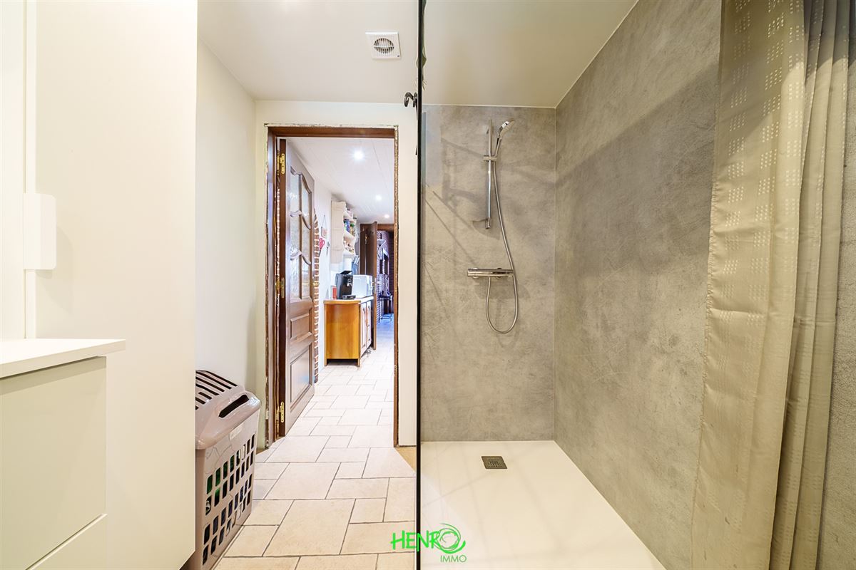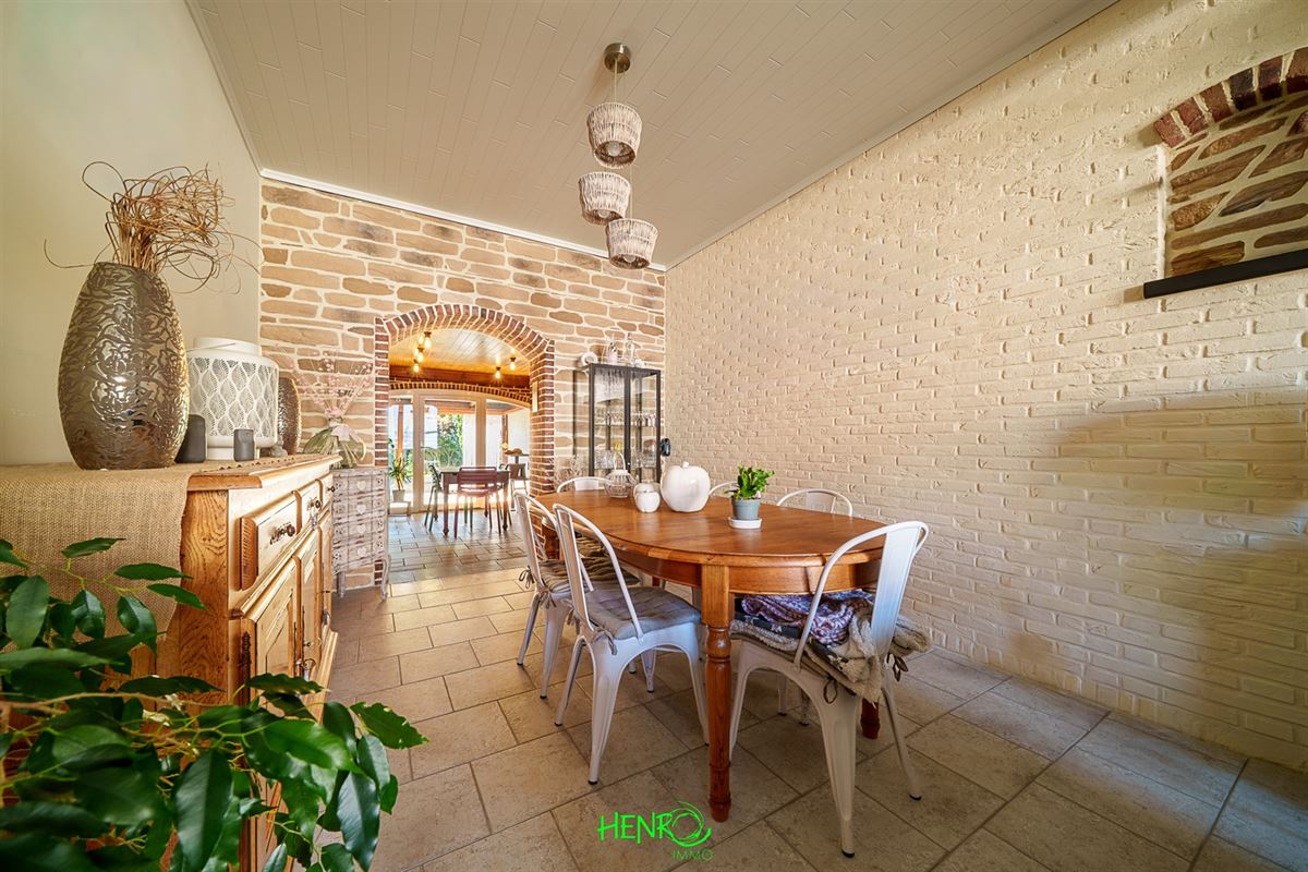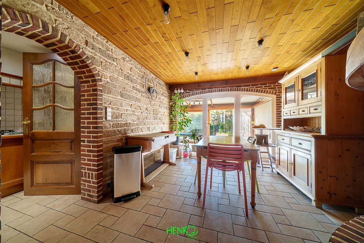 RDC : grand couloir desservant la cuisine qui est équipée, le salon et la salle à manger qui sont traversants. Vous y trouverez également une nouvelle salle de bains, un coin buanderie et une véranda avec une nouvelle toiture.