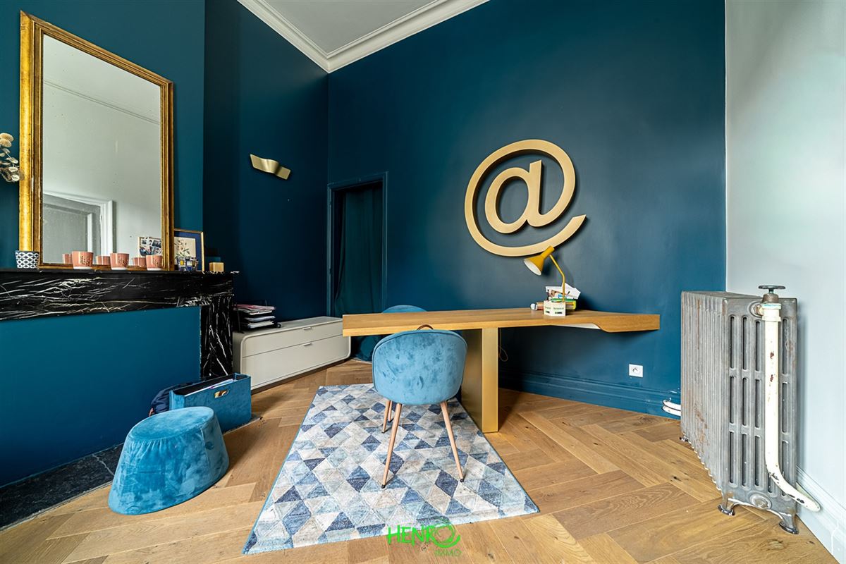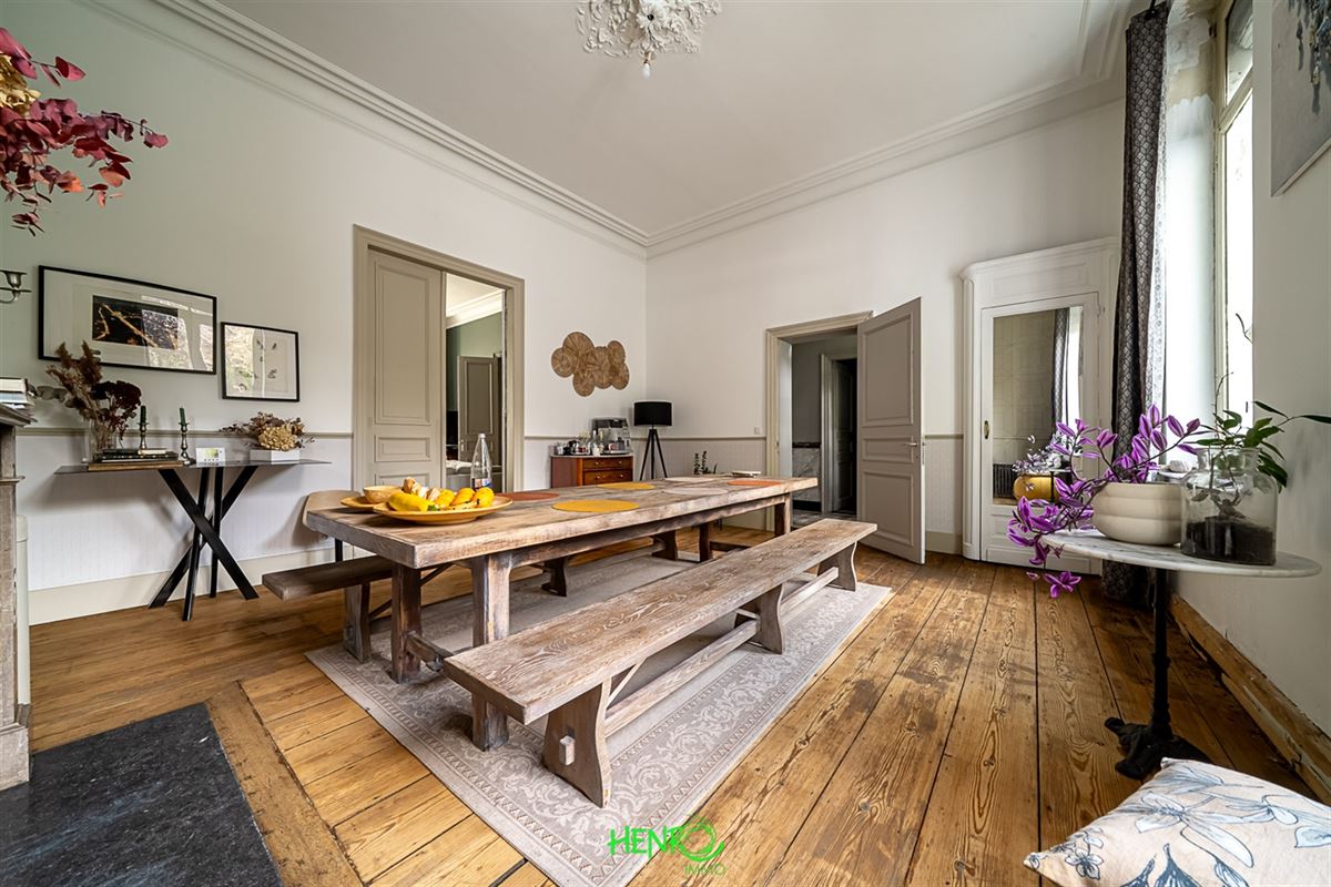 Située à 2' de toutes les commodités, cette maison de caractère datant de la fin du XIXe siècle séduit par son cachet authentique et ses volumes généreux. Dès l'entrée, la hauteur des pièces donnent le ton, vous trouverez un couloir distribuant un grand bureau idéal pour le télétravail, diverses pièces spacieuses et polyvalentes, ainsi qu'un double séjour (avant et arrière), sublimé par un superbe plancher d'époque.À l'étage, trois grandes chambres confortables, une salle d'eau et un WC indépendant offrent un espace nuit parfaitement agencé. Le second niveau propose également trois autres chambres supplémentaires, accompagnées d'une deuxième salle d'eau et d'un second WC, répondant aux besoins des grandes familles ou d'un projet de cohabitation. Un vaste grenier aménageable vient compléter le tout, offrant un potentiel d'aménagement supplémentaire rare.Le confort est au rendez-vous : chauffage central au gaz avec radiateurs en fonte, châssis double vitrage en bois, installation électrique conforme pour l'acte, et un niveau de prestations soigné dans toute la maison.À l'extérieur, la terrasse est spacieuse et le jardin bien orienté, ce qui constitue un véritable havre de paix. Un grand garage, très pratique, assure un second accès au bien, idéal pour un usage mixte ou pour un projet professionnel.Un bien de caractère, offrant de très belles prestations et une configuration idéale pour accueillir une grande famille ou développer une activité indépendante.