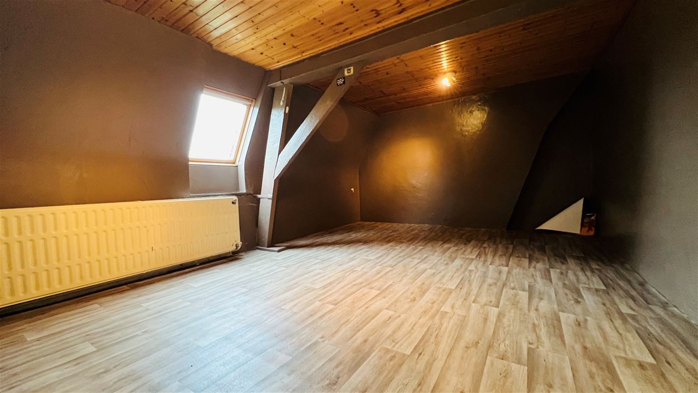 Au 2ème étage : un hall, une troisième chambre et un grenier aménageable.Caractéristiques techniques :Châssis bois & PVC double vitrage (persiennes au rez) + Velux bois DV
