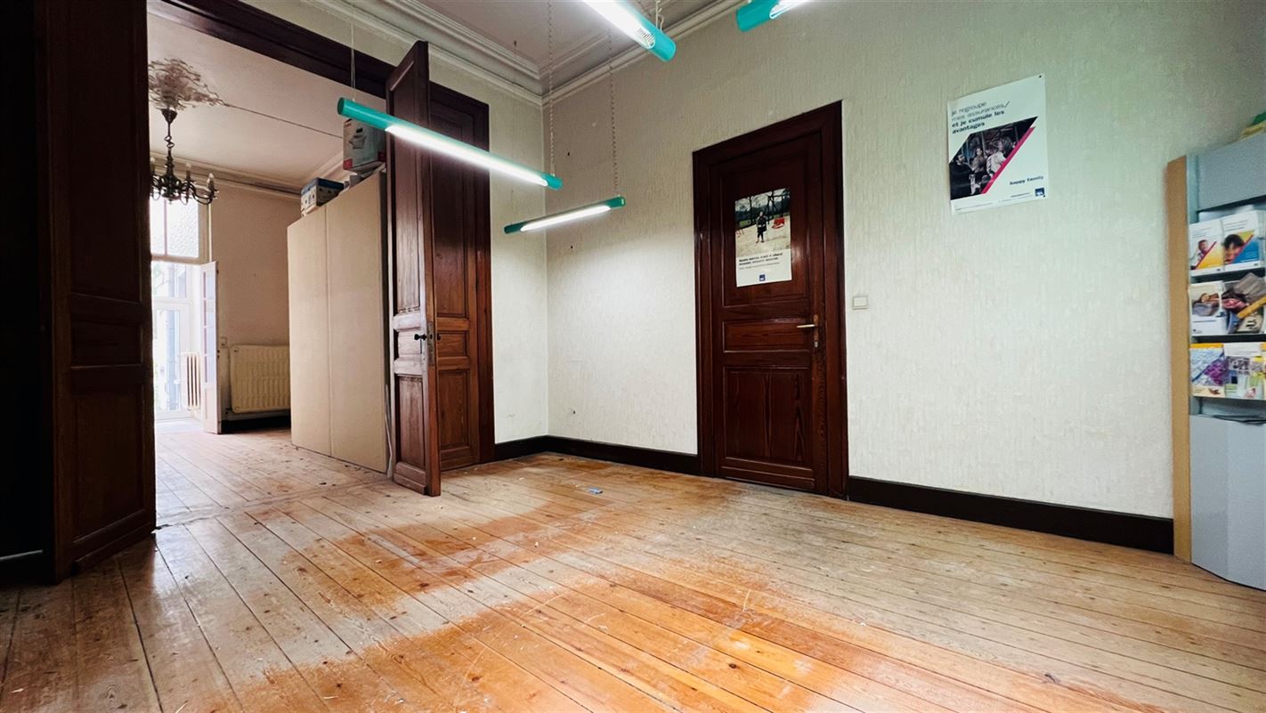 Spacieuse maison familiale avec charme et potentiel.Idéalement située dans un quartier recherché, face au parc Van Cutsem et à seulement 200 mètres de la gare, cette maison de caractère développe une surface habitable de 236 m² (hors cave et combles).Elle se compose :Au rez-de-chaussée : un hall d’entrée avec escalier apparent, un spacieux living (salon et salle à manger), une cuisine équipée avec coin repas, une salle de bains (baignoire, meuble lavabo, coin buanderie), un WC séparé, une cave saine de 25 m² et une cour extérieure.