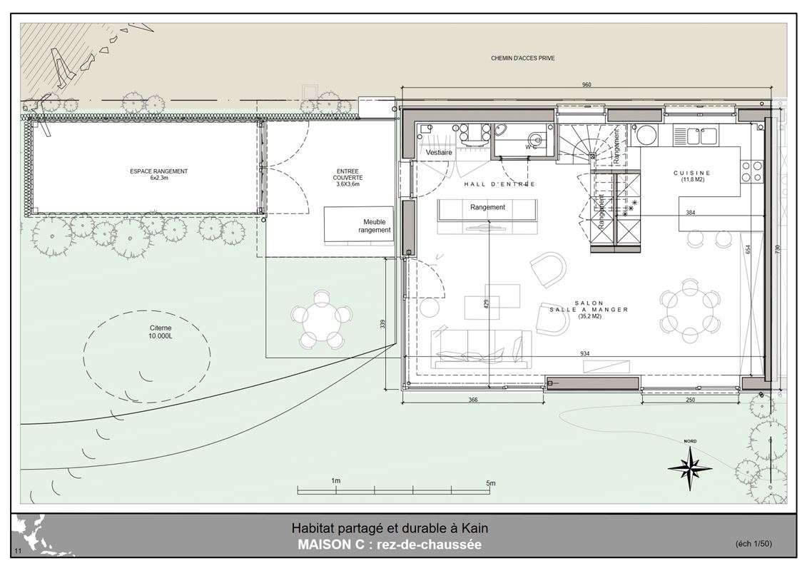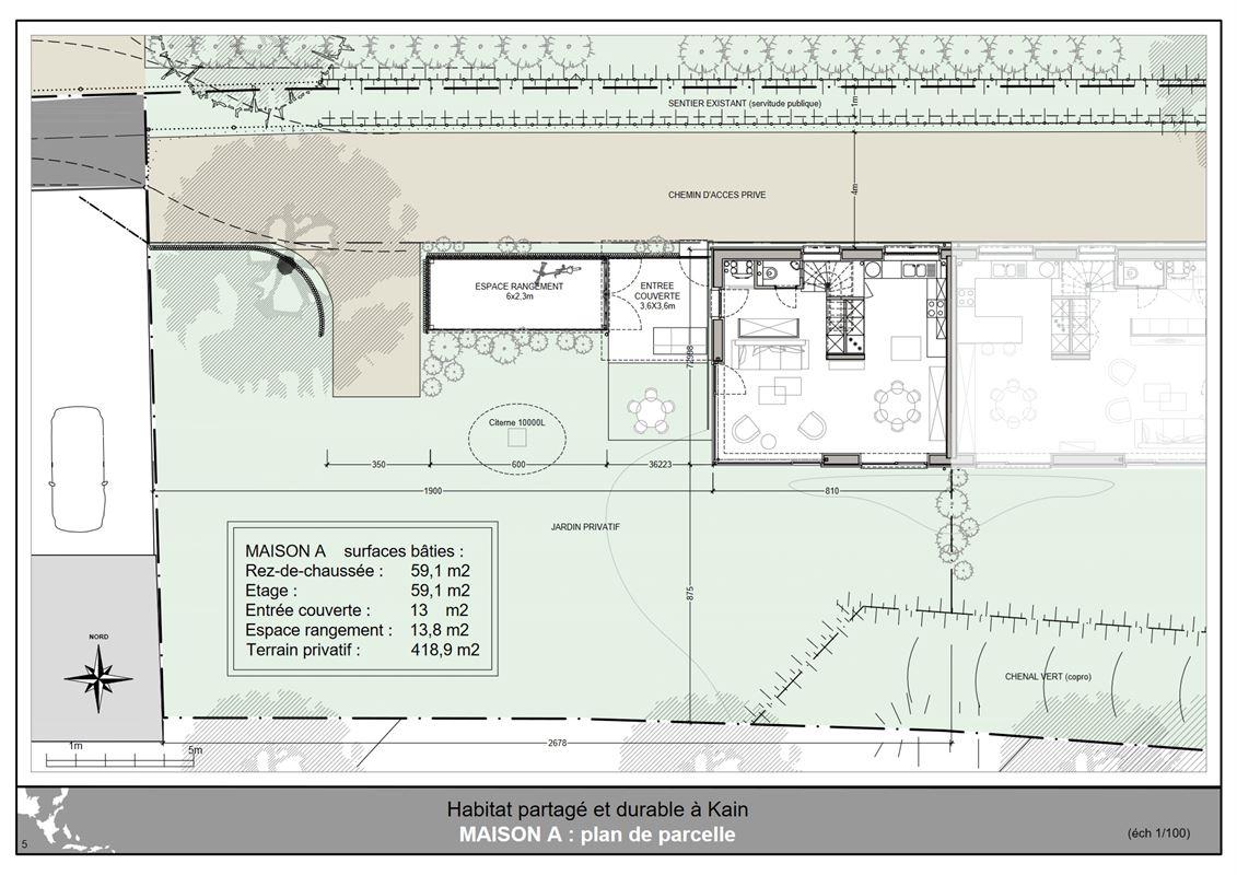 L’architecture s’intégre au caractère champêtre du lieu. L’ensemble forme un éco-hameau à taille humaine, avec à la fois des jardins privés et des espaces communs : jardins collectifs, lieux de convivialité, etc.